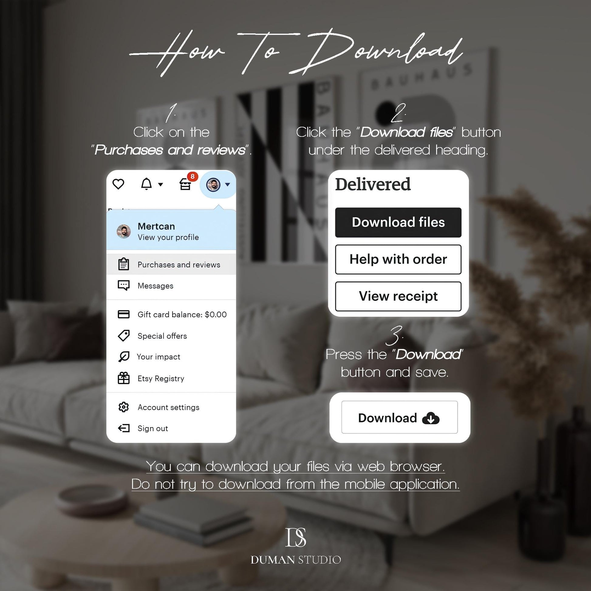 • To access your digital file(s), go to Your Account > Purchases and Reviews (https://www.etsy.com/your/purchases) and look for the order.