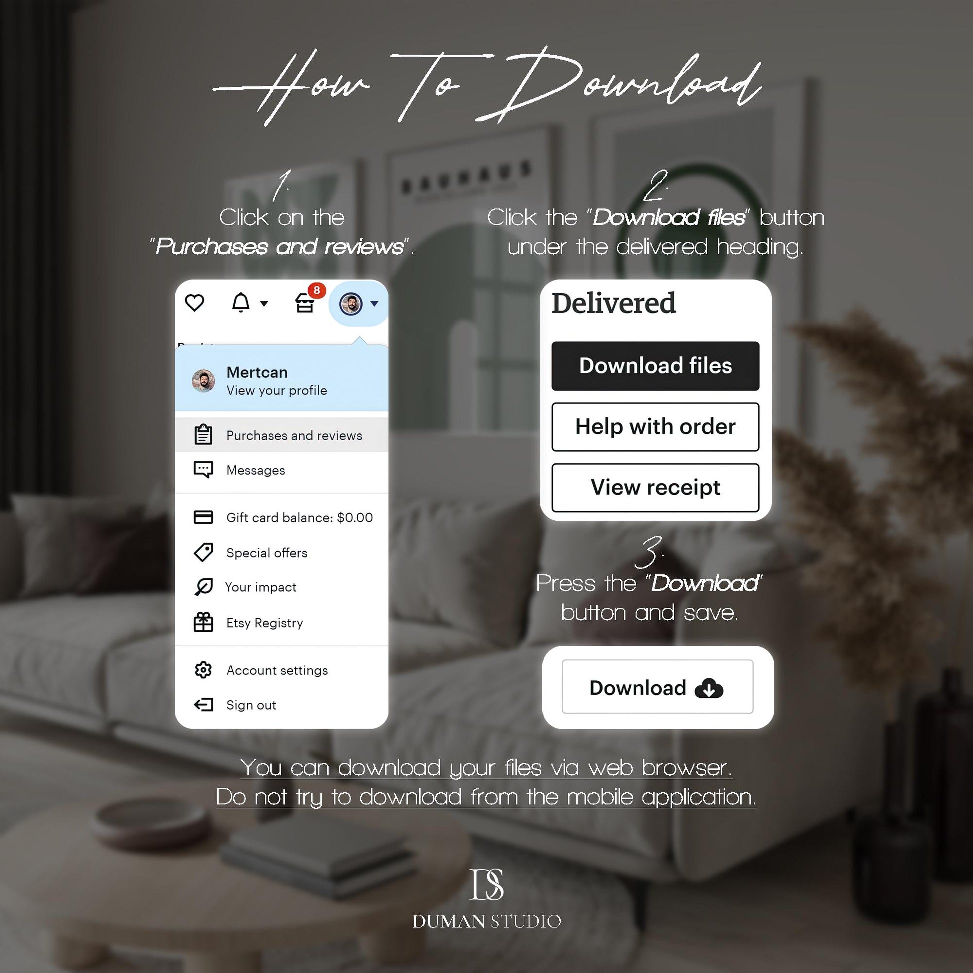 • To access your digital file(s), go to Your Account > Purchases and Reviews (https://www.etsy.com/your/purchases) and look for the order.