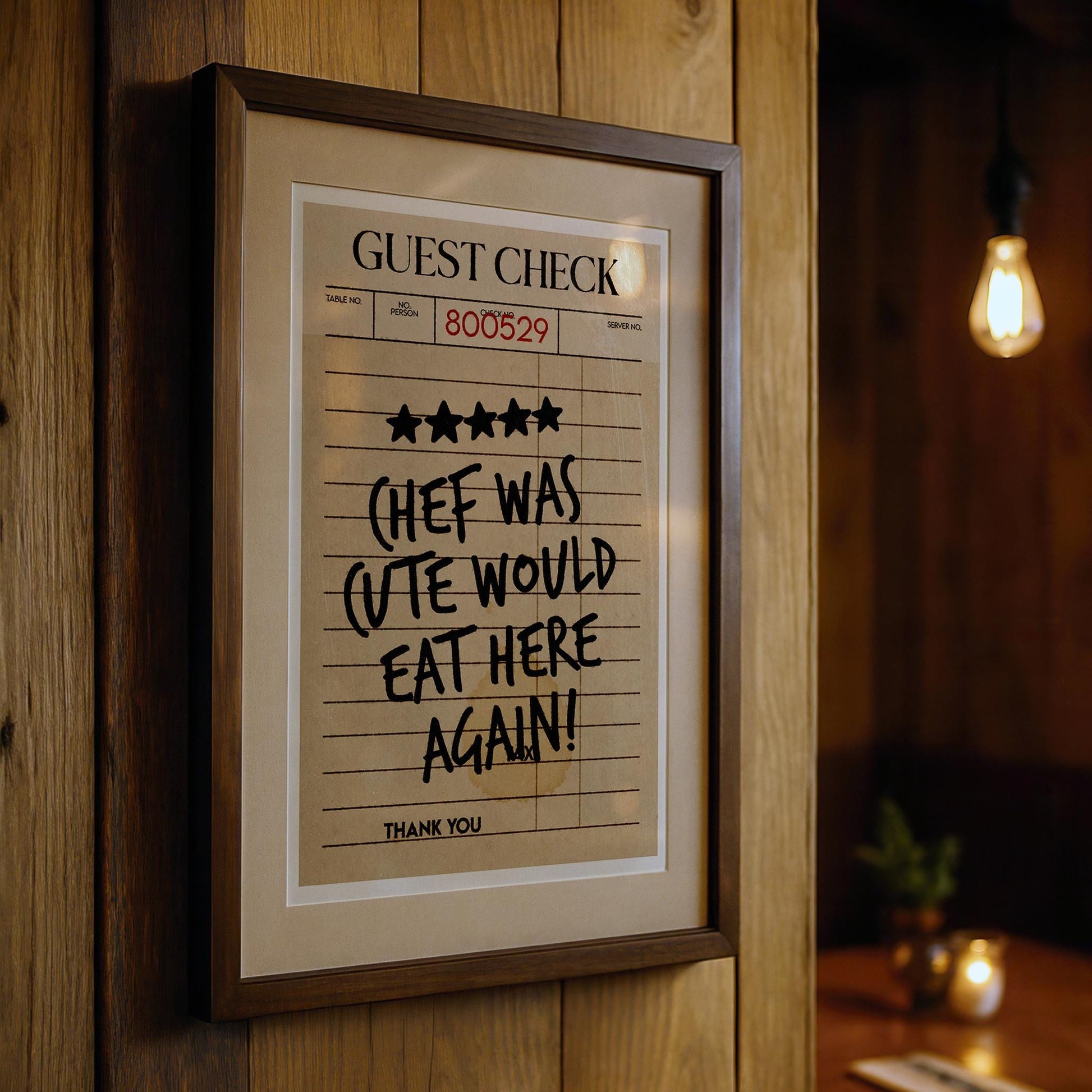 Chef Was Cute Would Eat Here Again Wall Art, Guest Check Print, Food Review Kitchen Art, Kitchen Wall Art, Bar Cart Art