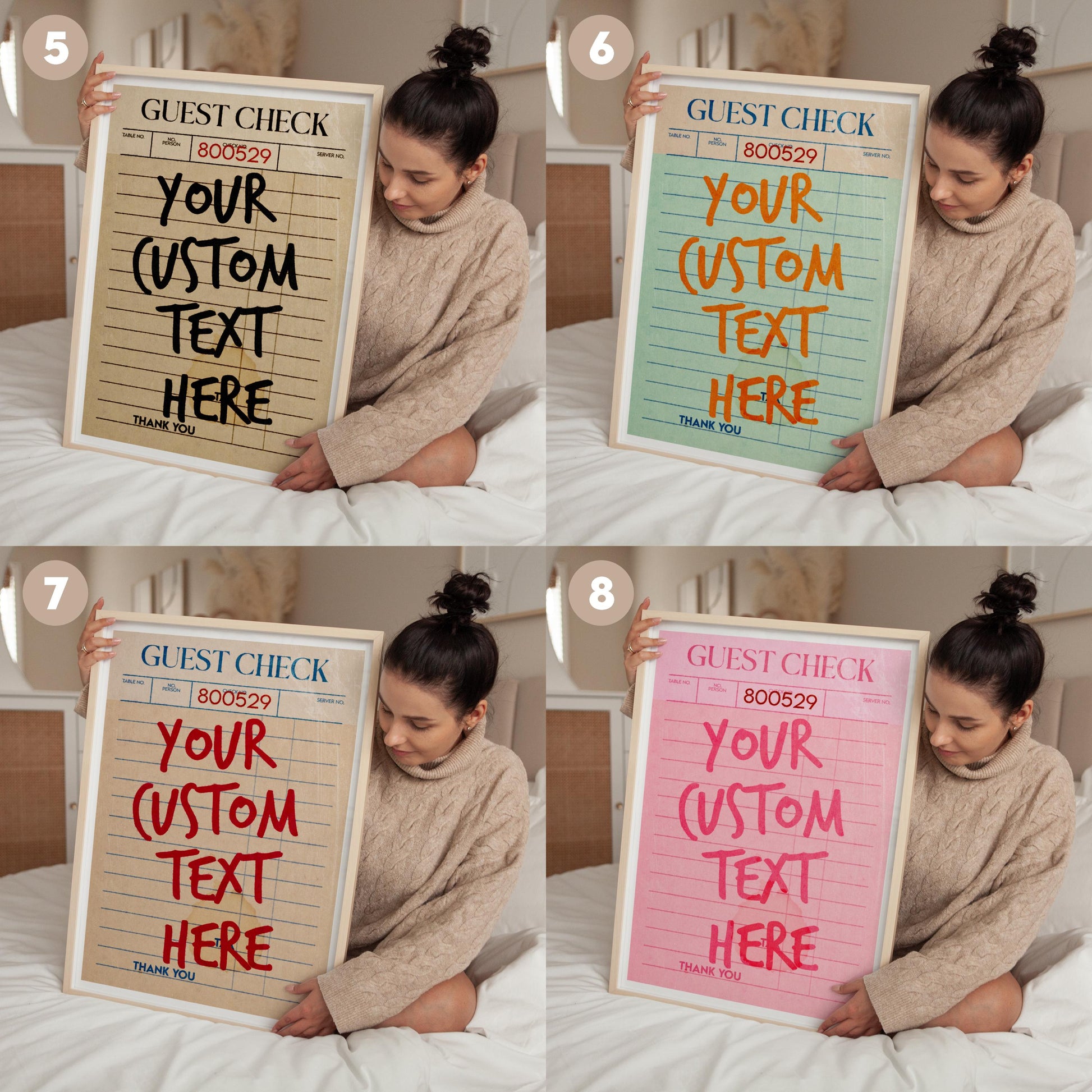 Whether you’re redecorating your dorm, refreshing your kitchen nook, or looking for a quirky gift idea, this custom guest check print is your go-to piece for maximum vibe.