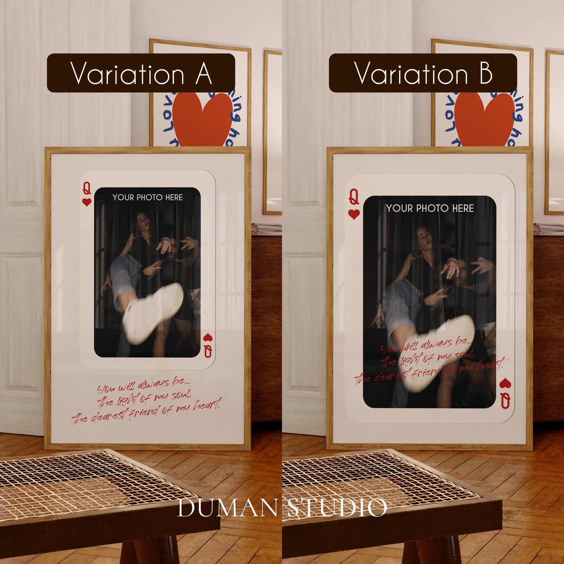 Turn your favorite memories into a fun and heartfelt keepsake with this Custom Photo Print styled like a playing card! Whether you're surprising your best friend, soul sister, or your favorite person, this unique design blends sentimentality with style.