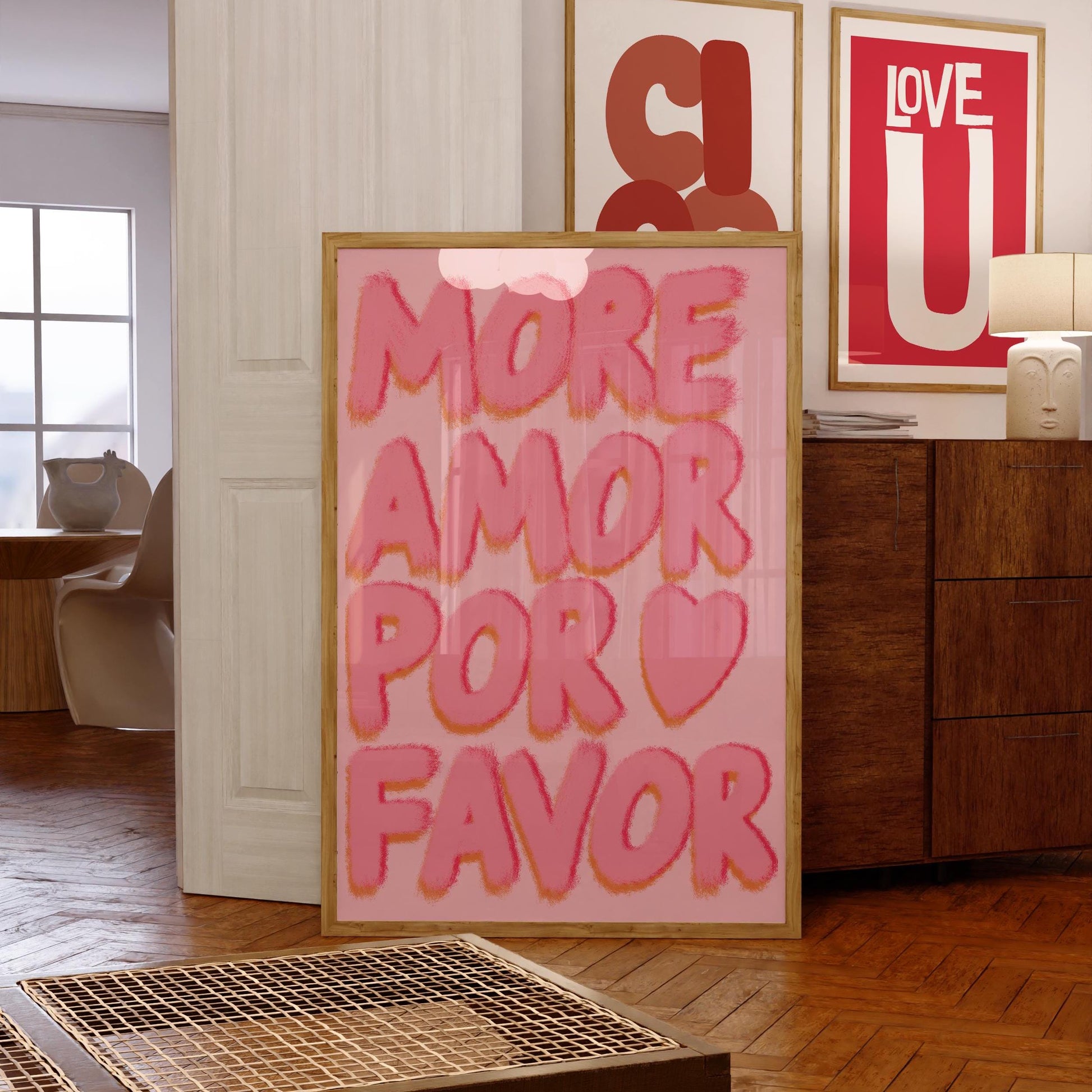 More Amore Por Favor Print, Preppy Aesthetic, Pink Girly Wall Art, Maximalist Poster, Trendy Wall Art, Love Quote Print